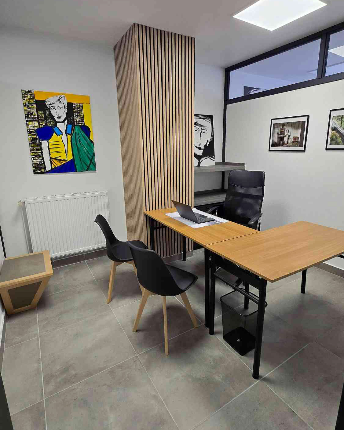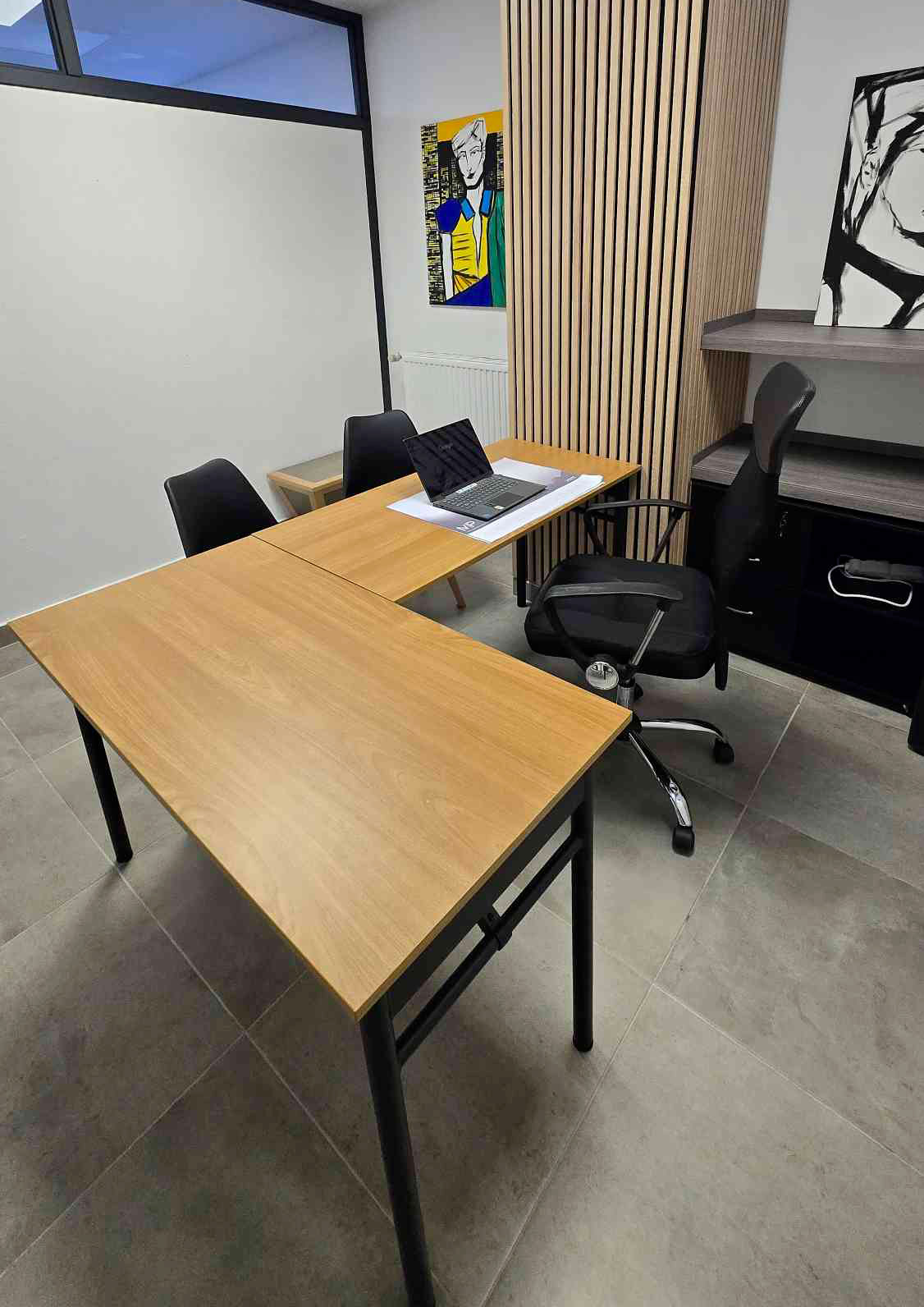 Ce bureau de 12 m², disponible à partir de 7 € HT/heure, offre les mêmes prestations haut de gamme que le bureau de 14 m², dans un format légèrement plus compact. Idéal pour une personne seule ou des rendez-vous professionnels ponctuels.